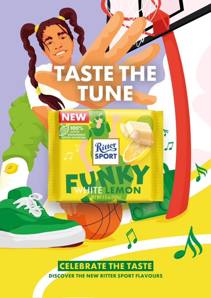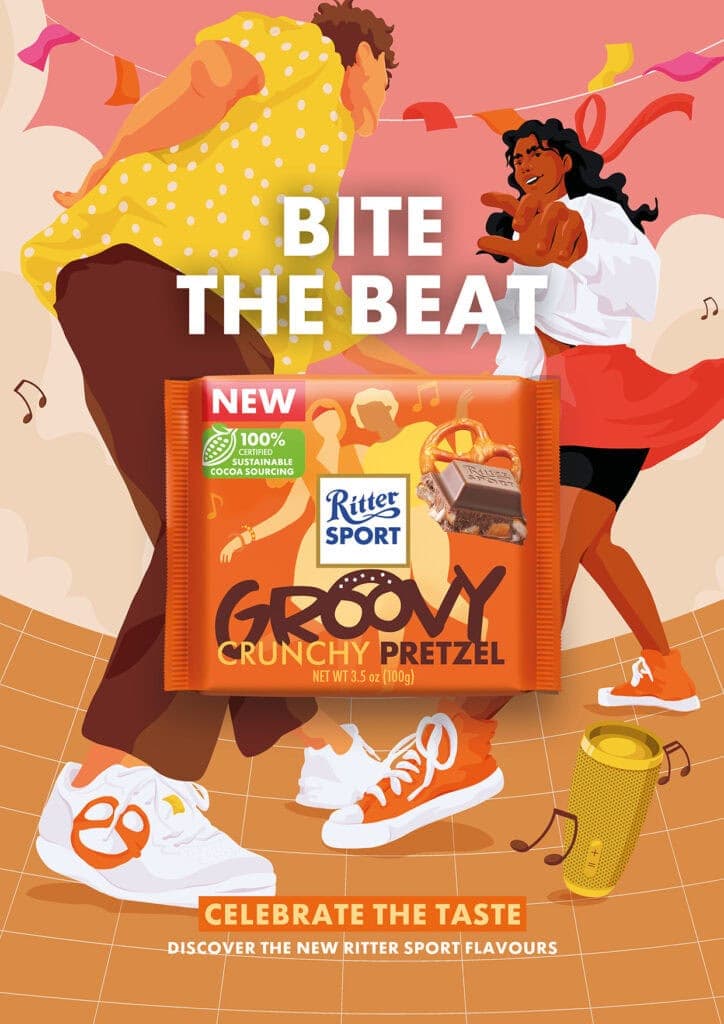 Ritter Sport hat drei neue Sorten rausgehauen, die wir voll feiern! Die „Tasty Vibes“ bringen Schokolade und Musik zusammen und das ergibt: eine fette Party. Also haben wir Josephine Rais gefragt, ob sie die gute Laune, Beats und Dance Moves nicht in ihrem Style illustrieren kann. Und wer sagt schon nein zu Schokolade.