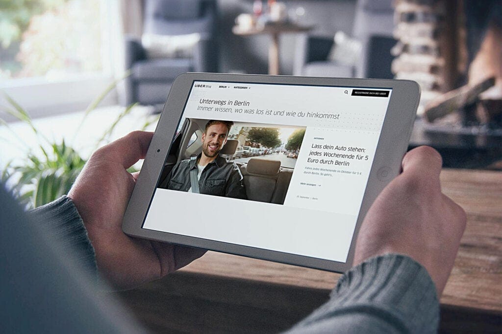 Die Botschaft: Bei Uber geht es um mehr, als nur von A nach B zu kommen. Es geht darum, urbane Mobilität von A bis Z neu zu denken. Also gaben wir Denkanstöße – mit Außenwerbung in deutschen Großstädten, Anzeigen in reichweitenstarken Tageszeitungen, Onlinebannern und einer eigenen Landingpage.